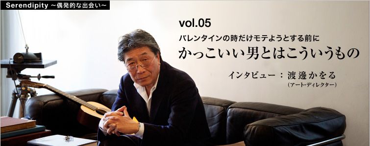 1943年、東京・築地生まれ。(株)渡邊かをるインク主宰。キリンラガービールのラベルをデザインするなど、広告のアート・ディレクターとして活躍する一方、陶磁器、美術全般への造詣の深さと、その粋なライフ・スタイルにも定評がある。鎌倉に昭和初期の建物(旧横浜銀行由比ガ浜出張所)をそのまま生かしたバー「ザ・バンク」(TEL:0467-60-6170)をオープン。