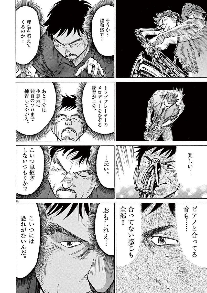 高校3年生になった大が師と仰ぐことになる由井は、バークリー音楽大学に留学していたほどのジャズの実力者。幼少時代からサックスを吹き続け、ピアノも弾き、ジャズの音楽理論にも精通しています。しかし、本人が目指した“超一流”のジャズプレーヤーになることができず、今では仙台でしがない音楽教室の先生をしています。そんな過去を持つ由井は、それはもうとんでもないひねくれもので……。酔っぱらって路上ミュージシャンに「下手くそ」と悪態を吐いて絡むほどの‟嫌な大人”なのです。しかし、荒削りだが魂のこもった大のサックスを聞き、由井は可能性を感じます。素直に大のサックスに惚れてしまうのです。それは由井に限ったことではなく、大が初めて演奏したジャズバーの店長も、サックスのリードを買いに行く楽器屋の店長も、高校の音楽教師も同じで……。みんな、大のサックスとジャズに対する真っ直ぐな姿勢に惚れ込んでしまうのです。