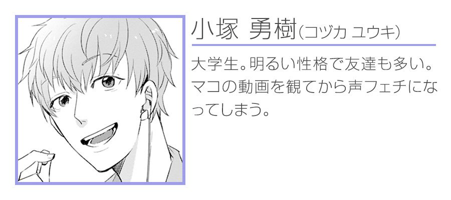 大学2年生の勇樹は、明るい性格で友達も多く充実した毎日を送っていた。しかし夢中になれるものが見つからずに物足りなさを感じていたある日、偶然発見したゲーム実況者・マコという男性の声に欲情してしまう。次の日も彼の声が耳から離れずボーっと歩いていた勇樹は同じ大学の男子生徒・真とぶつかってしまった。さらに真の声が、昨日自分がオカズにしたマコの声とそっくりなことに気づき思わず「マコ?」と尋ねてしまう。すると真はいきなり勇樹の手を引っ張って・・・!?