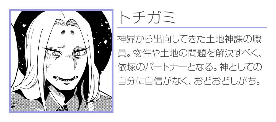 幽霊を引き寄せやすい体質を持つ依塚崇は、田舎町の冴えない公務員。そんな彼がワケあり仕事のバディとして組むことになったのは、なんと神社から派遣されてきた神様・通称「トチガミ」さん!? 奇妙な仕事をこなす中で、どこか自分と似ているトチガミに淡い思いを募らせていく依塚だが・・・・・・。ちょっぴりホラーな人外受けBL、キュートな描き下ろしも収録してコミックス版が登場!!