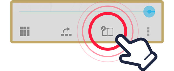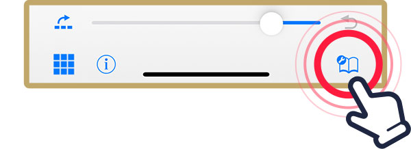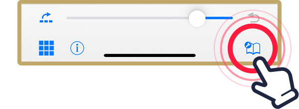 画面をタップして表示される読書メニュー画面で本のアイコンをタップ