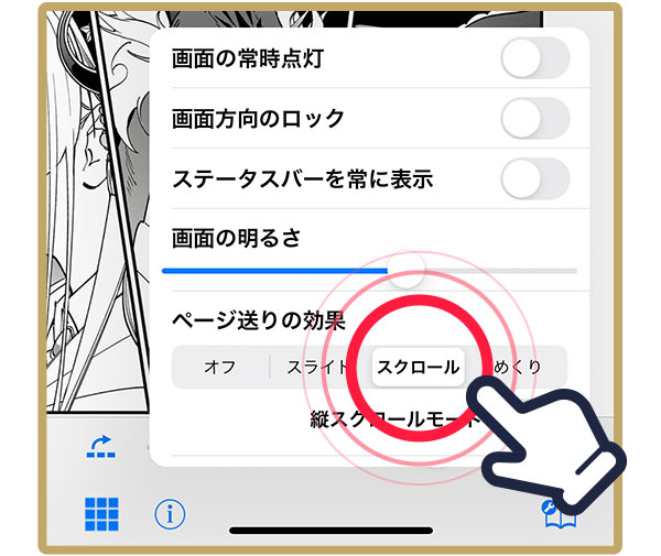表示されるメニューの「ページ送りの効果」から「スクロール」を選択する
