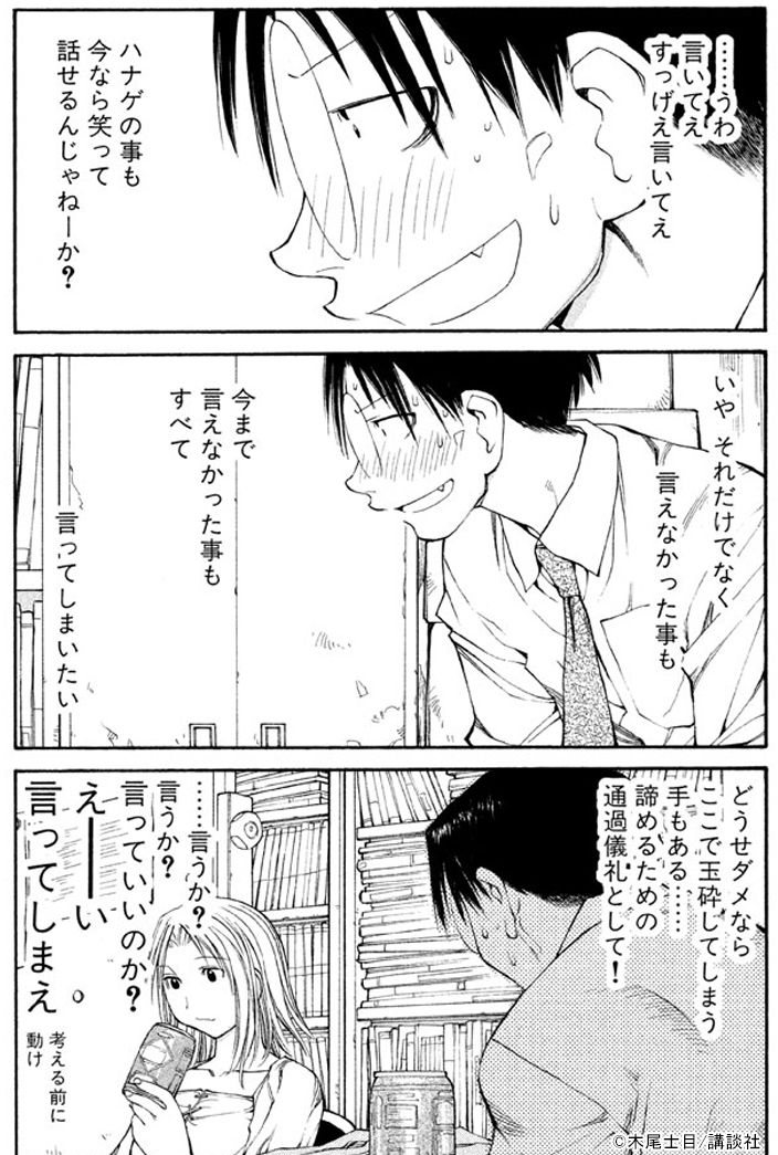 最近は『ヲタクに恋は難しい』や『タイムスリップオタガール』のような作品が流行していますが、オタクの恋愛というテーマで最初にヒットしたマンガは、この『げんしけん』なんじゃないかなあと。オタクという生き方にすべてを捧げ、欲望に忠実に生きる人たちの存在が広く認知され、誤解や偏見を持たれながらも市民権を得つつあった時期に、この作品の連載が始まったのは非常に象徴的。読者は、作中それぞれのキャラに自分の姿を投影したり、彼らに憧れたり(生態を楽しんだり)、という二重の面白さがあった。