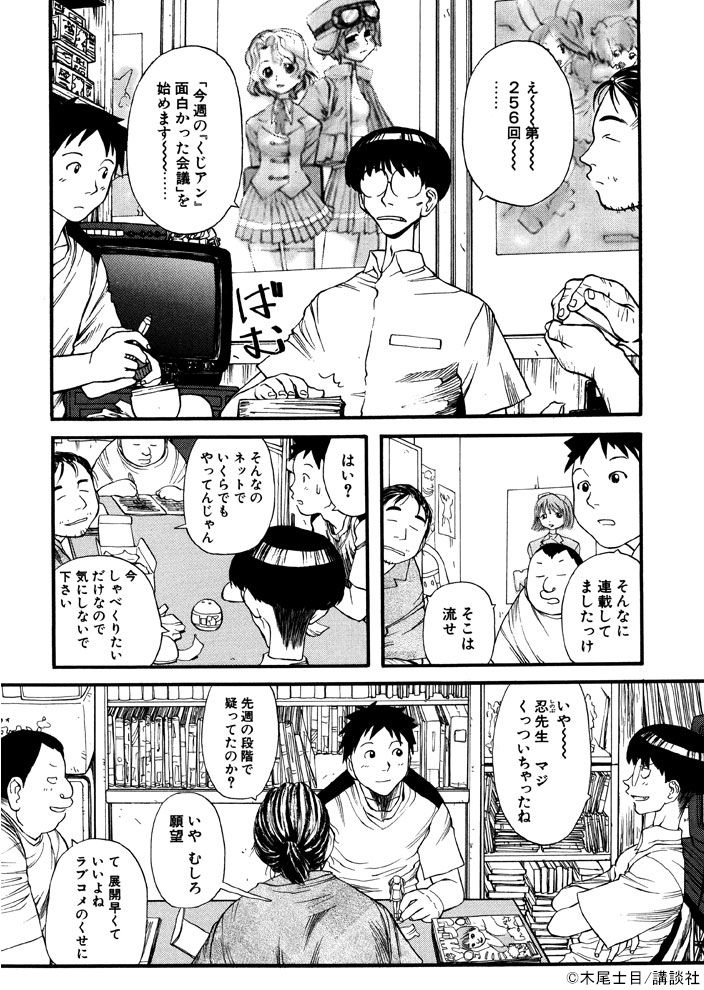 連載当初の「現視研」の日常。ウザい。フツーの人も飲みの場ではこうなりますけど。
