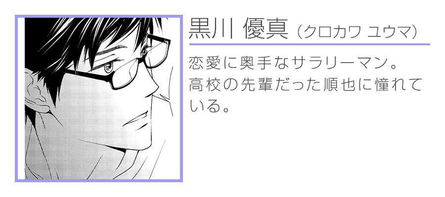 恋愛に奥手なサラリーマン・優真(ユウマ)には忘れられない人がいた。高校生の頃、先輩だった順也(ジュンヤ)に憧れに似た特別な思いを寄せていたのだが、順也に「男を好きになるタイプ」だと打ち明けられ、どうしていいかわからず卒業後は疎遠になっていた。しかしある日彼氏と別れた順也に偶然再会し…?