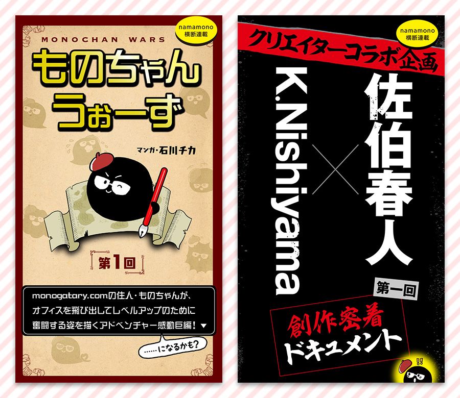 ”思いがけない、カタチになる”投稿サイトmonogatary.comならではの、形式にこだわらない電子書籍レーベル「namamono」から生まれる作品をお楽しみに!