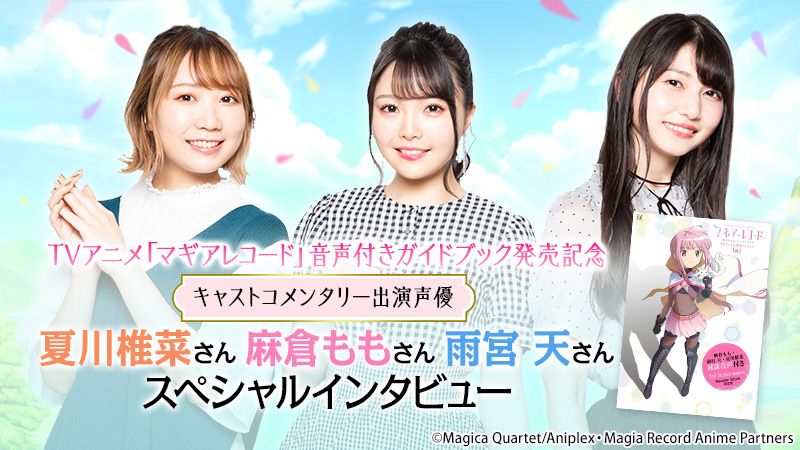 本コンテンツは、『【麻倉もも・雨宮 天・夏川椎菜 対談音声付き】マギアレコード 魔法少女まどか☆マギカ外伝 TVアニメ公式ガイドブック 2nd SEASON放送記念 Reader Store限定版』に収録のトーク(約50分)より、冒頭の約2分30秒をお聞き頂ける無料お試し版です。