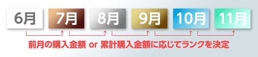 ランクの決定は、前月1か月間のご購入金額の合計が基準となります。