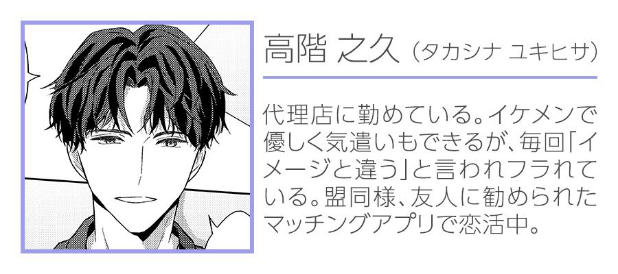 大学生の盟はマッチングアプリで会う予定だった女性にドタキャンされてしまう。すると隣の席にいたサラリーマンの高階に声をかけられる。彼も同じく女性にドタキャンされたという。