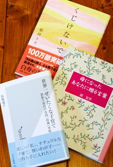 「最近気になるのは、やっぱり子育て系の本ですね。ママ友達に勧められたり、タイトルに惹かれて購入したり。『くじけないで』『母になったあなたに贈る言葉』は、子育てでちょっと疲れ気味のときに読んで号泣…。言葉のひとつひとつが心に染み込みました。『世界一ぜいたくな子育て』は、世界の子育て事情がわかって、これでいいんだ! と自分の子育てに自信がもてた本です」