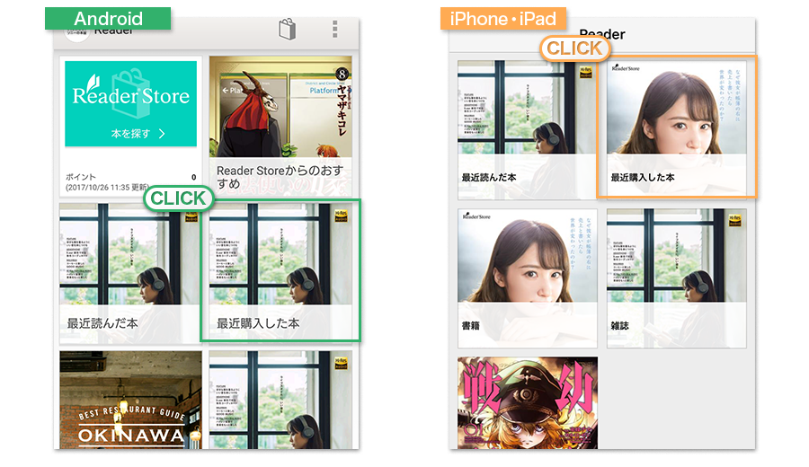 お手持ちのスマートフォン・タブレットにReader Storeアプリをダウンロードしてください。
