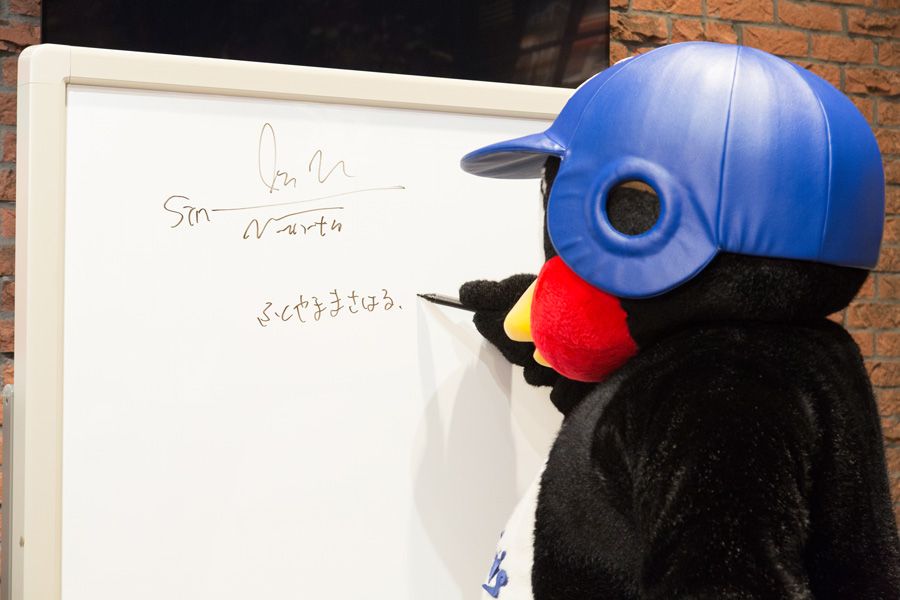 そしてこのドヤ顔! 「もしも、年俸ライバルの山田選手の本を作るとしたら?」「もしもつば九郎先生の本を自由にプロデュースするとしたら?」など、つば九郎先生に編集長になりきって、どんな本を作りたいかをリサーチさせていただきました。さて、先生は何と答えられたのでしょうか、そしてつば九郎先生の新作は実現するのか!?……答えはスペシャル動画でご確認を!! つば九郎先生、ありがとうございました!