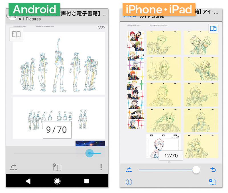 ダウンロードが完了すると、『キャスト対談音声付きオープニング原画集』を読むことができるようになります。
