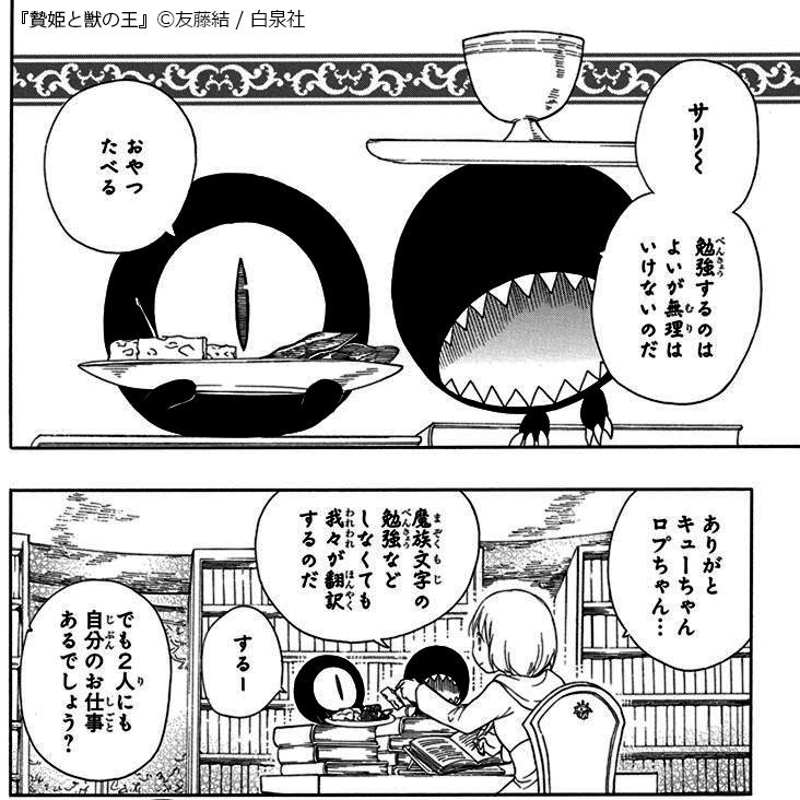 「少女以外、全員人外。」と単行本の帯に記されているのですが、まさにその通り。魔族世界では主人公のサリフィ以外、本当にみんな”人外”なんです。獣姿や怪物のキャラクターが脇を固めます。この人外たちがまた魅力的でかわいいこと!