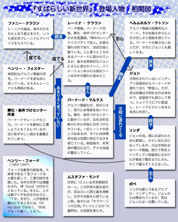 『すばらしい新世界』がますます読みたくなる登場人物相関図をどうぞ!