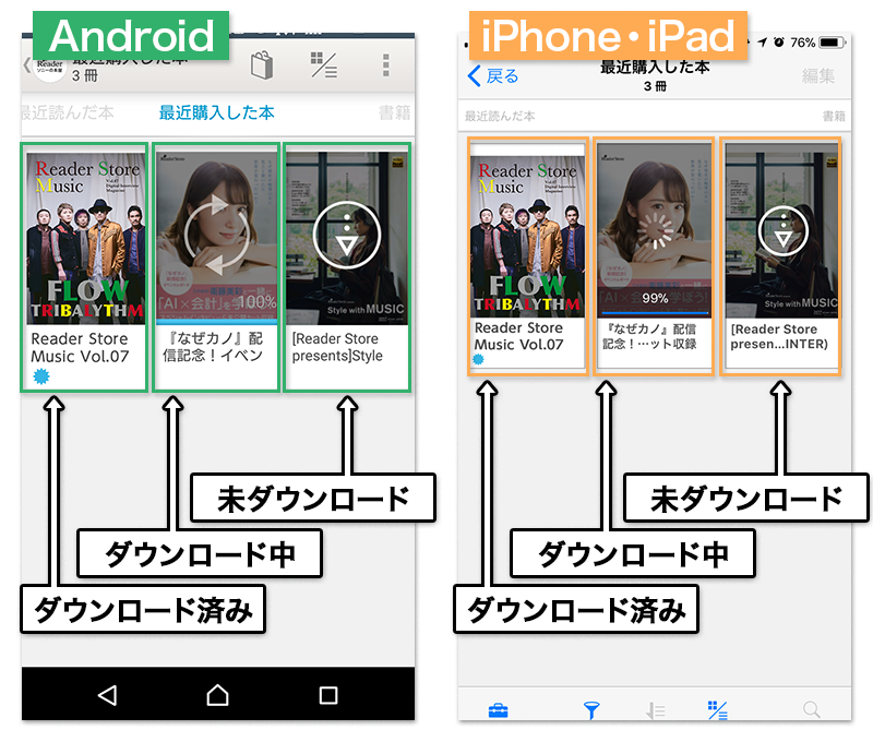 「最近購入した本」に移動したら、『Reader Store Music』をダウンロードしてください。