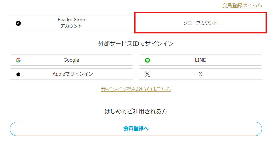 My Sonyをお持ちの方は、サインイン画面にある「ソニーアカウント」からお進みください。