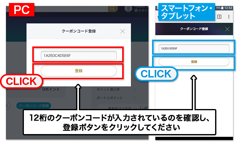 ボタンをクリックすると、サインイン後にクーポンコード登録のウインドウが開きます。12桁のクーポンコードが入力されているのを確認し、登録ボタンをクリックしてください。