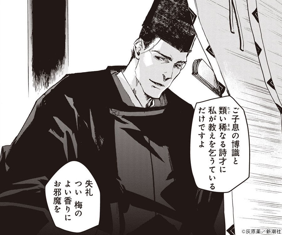 人前に出る時は完璧な所作と笑顔で相手をとりこにする天才だが、道真に対しては割りと無防備な姿を見せたりもする。ときには若い頃に泣かせた女がしっかり幸せを掴んだ姿で現れて大恥をかいたりもする。