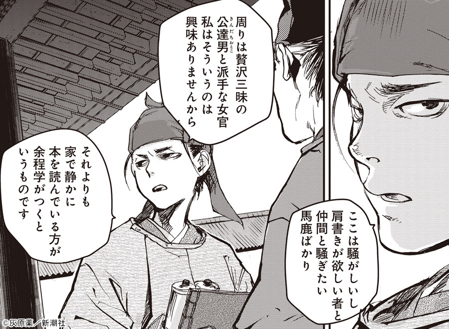 無知と権力が嫌いで、自分の知的好奇心を満たすことが大好き。最先端の文化と学問が花開く国、「唐」に憧れるオタク気質の少年だ。基本的にはコミュ障の仏頂面なのだが、オタクなので貴重な唐物を目の前にするとちょっとテンションがおかしくなる。