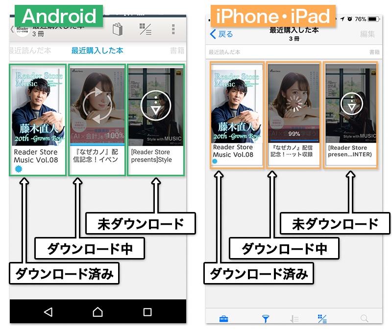 「最近購入した本」に移動したら、『Reader Store Music』をダウンロードしてください。