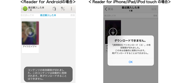 ・2017年1月23日以前にお買い求めいただいたコンテンツをデバイスの本棚からダウンロードする際にエラーとなる場合がありますが、その際には、購入した本の同期操作を行ってください。