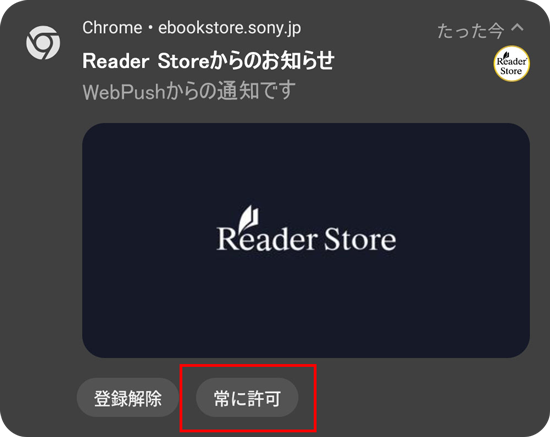 3. Reader Storeからのお知らせ下部「登録解除 / 常に表示」の選択肢から「常に許可」をタップします。