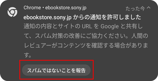 Reader Store(ebookstore.sony.jp)からの通知に対して、Android版Chromeをご利用の端末で「不正の疑いのある通知」と表示されるケースがあります。